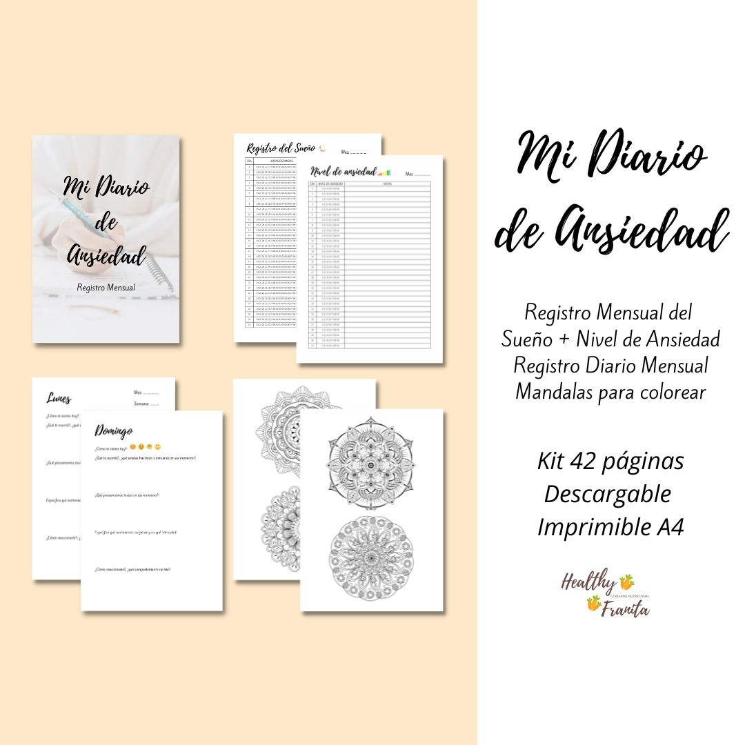Lleva un registro mensual de tu sueño y niveles de ansiedad, así como un registro de las emociones que experimentas a diario y qué conductas tomas para reducir la ansiedad. También tendrás mandalas para colorear, perfectos para reducir el estrés y la ansiedad.